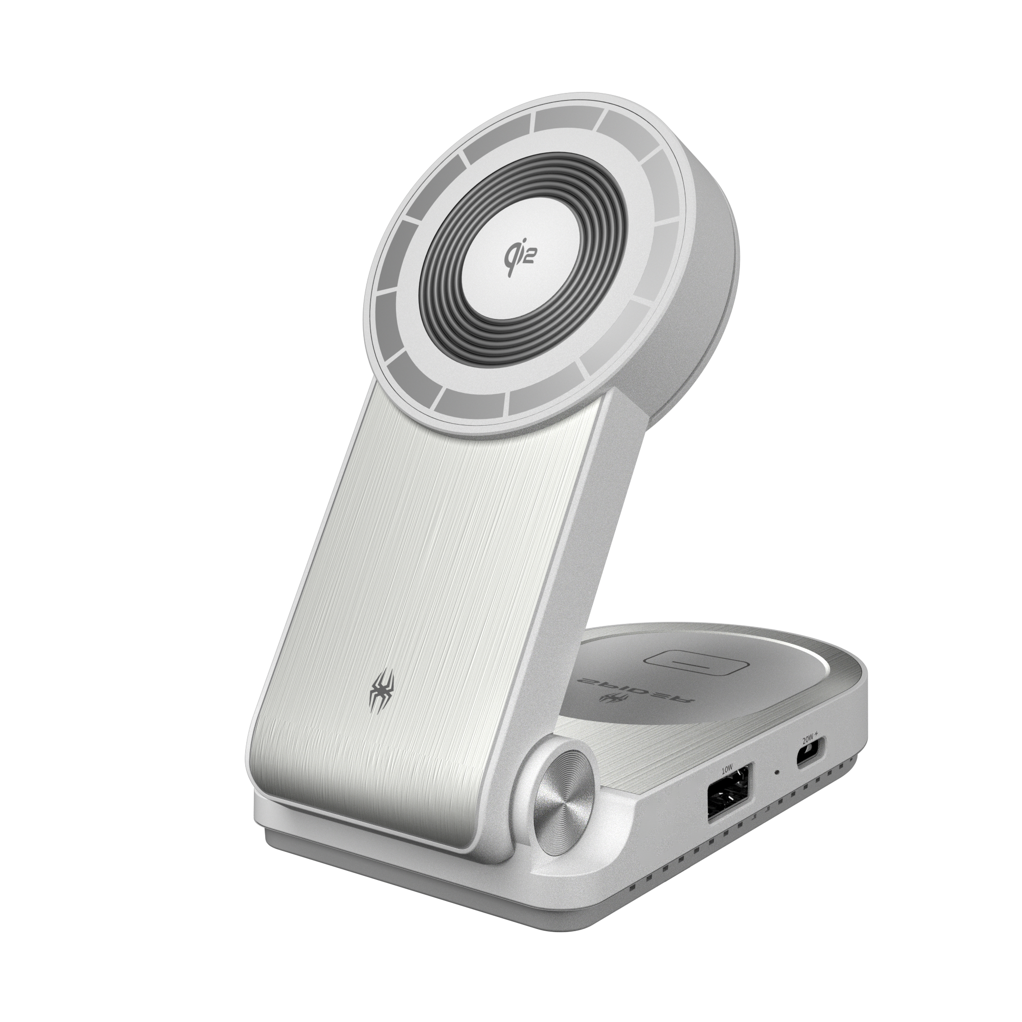 Engineered with Qi2 wireless charging and magnetic alignment, the Spider 5-in-1 Magnetic Wireless Charging Stand ensures precise placement and efficient, stable charging. Compatible with the latest iPhone models, smartwatches, earbuds, and two additional USB-powered devices. Intelligent power distribution makes it the perfect all-in-one charging hub for a clean, organized workspace.